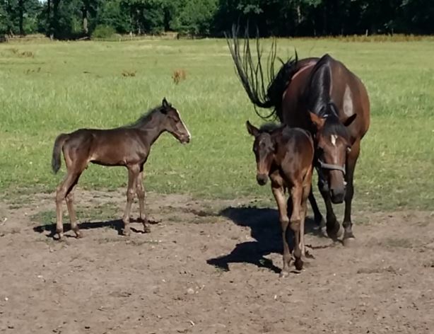 Raven und Rimrock, so die Namen der Helenenhof-Zwillinge. Rimrock, der kleine Hengst, hat sich nach fast vier Wochen gut entwickelt und eifert seiner großen Schwester nach.