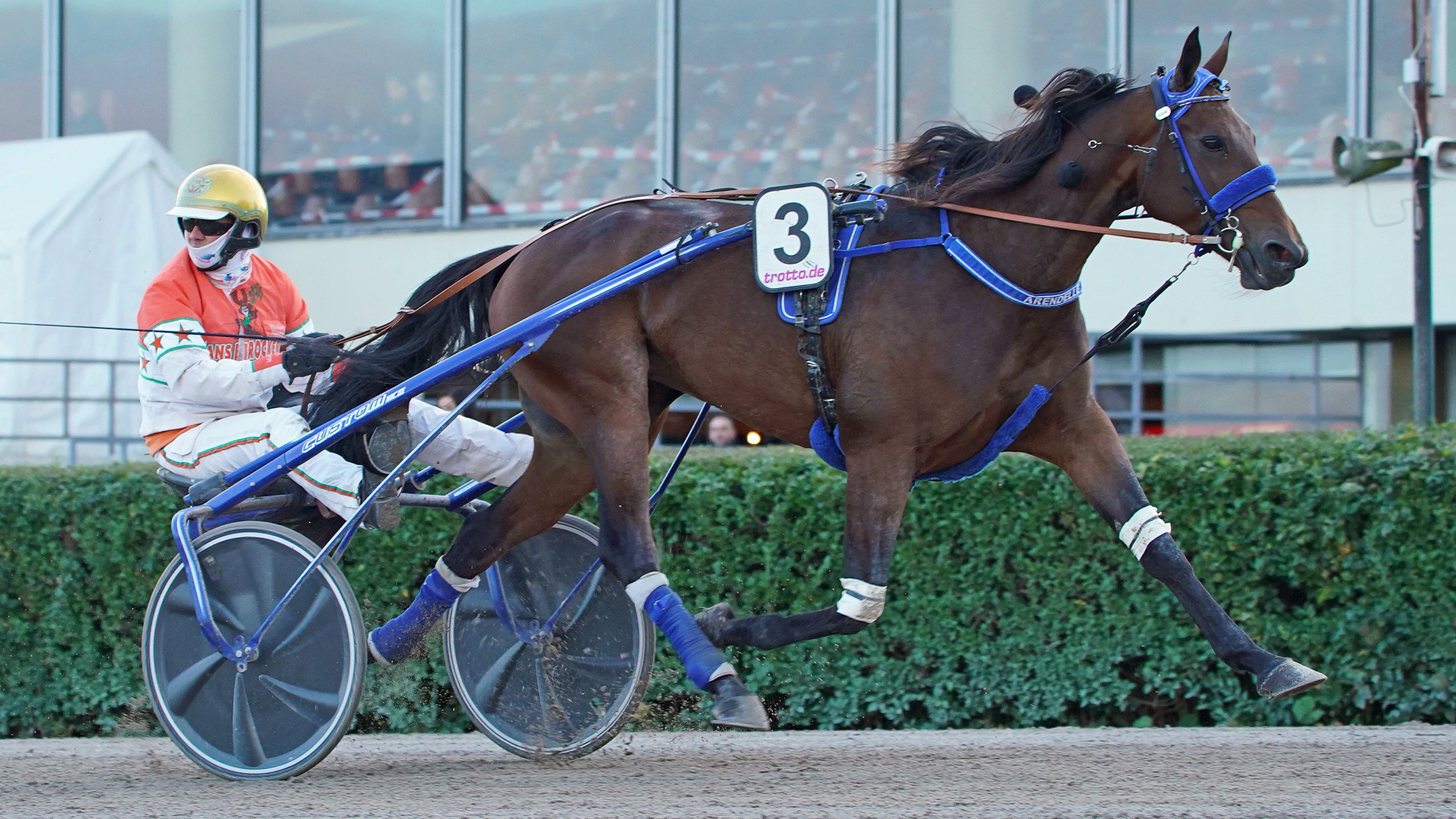 Die Rede ist von Arendelle, Erfolgspferd aus dem Rennstall Nimczyk, beheimatet auf der Rennbahn an der Niersbrücke, von wo sie aus in der Vorwoche nach Berlin geschickt wurde, um im wichtigsten Trabrennen für ältere Stuten als glorreiche Siegerin zurück zu kehren. Im sogenannten Hauptlauf der „Breeders Crown“ zeigte die schnelle Siebenjährige ihren Gegnerinnen die Eisen und sicherte ihren Besitzern Hermann und Martha Lehner aus Bayern nicht nur knapp 27.000 Euro Preisgeld, sondern auch die begehrte „Krone“.