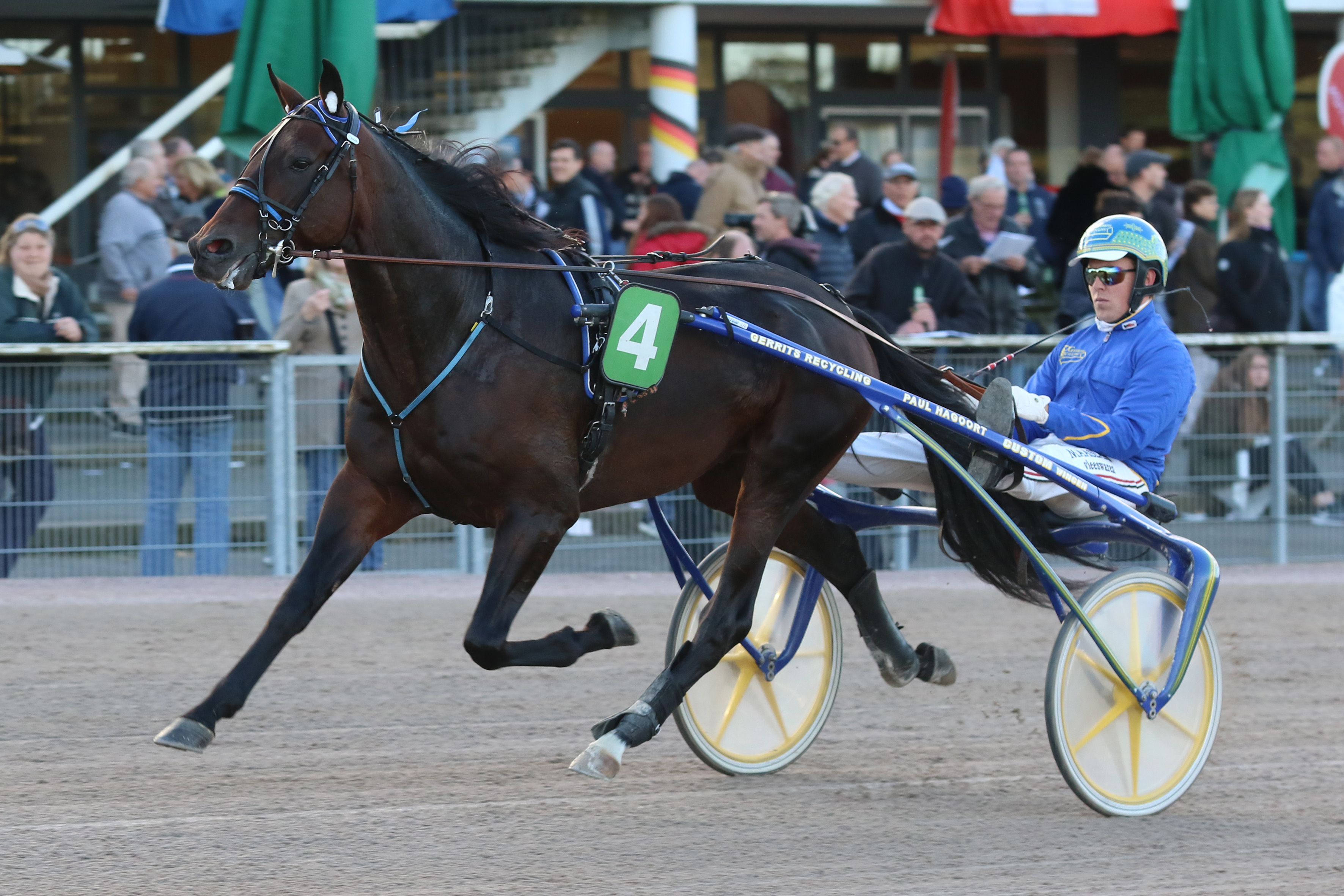 Broadwell, wie immer mit Rundum-Beschlag angetreten, kam aber nach Hause und geht nun als einer der Vorlaufsieger in das 400.000-Euro-Finale am 12. Oktober in Vincennes. Für den nach wie vor wenig geprüften Hengst, der auf dem norddeutschen Gestüt Struvenhütten von Jens Janssen geboren wurde, war es erst der elfte Start, aber schon der achte Sieg. Sein Konto erhöhte Broadwell mit dem Vorlauferfolg auf üppige 168.210 Euro. Überdies holte er sich mit 1:12,1 / 2100 Meter eine neue Bestmarke und war damit auch ein ganzes Stück schneller als der im 1. Vorlauf mit Franck Nivard siegreiche französische Vierjährigen-Primus Earl Simon, der in 1:12,7 allerdings nur das Nötigste tat. Hier schied die deutsche Hoffnung Classic Connection durch eine späte Galoppade aus, wogegen der im 2. Vorlauf von Tom Kooyman streng auf Ankommen gefahrene Massai hinter dem Niederländer Hooters USA mit Rang vier belohnt wurde, den Endlauf jedoch verpasste. (25.09.2018 Foto: Archiv U. Stelling)