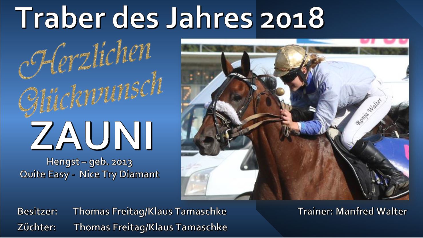Wir gratulieren dem gesamten Team rund um ZAUNI ganz herzlich zum Titel "Traber des Jahres 2018"!
